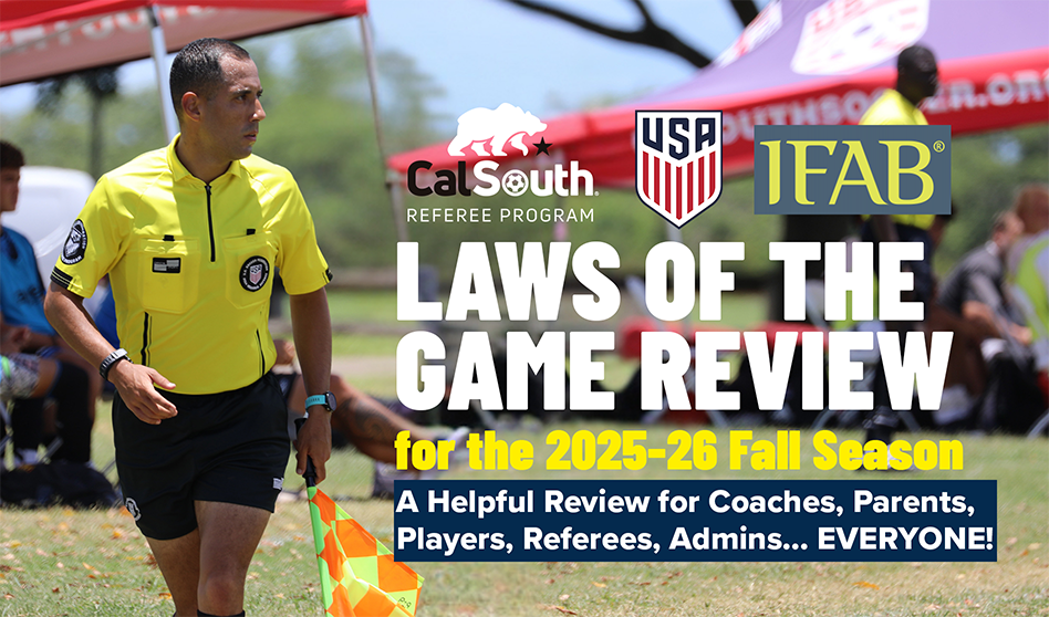ANAHEIM, CA (Wednesday, September 3, 2025) – With our Fall 2025-26 playing season swiftly reaching opening weekend in a couple of days, the Cal South Referee Program would like ALL Cal South members – coaches, referees, team administrators, parents, and players – to be well aware of the latest changes to the Laws of the Game in advance of the season launch.
