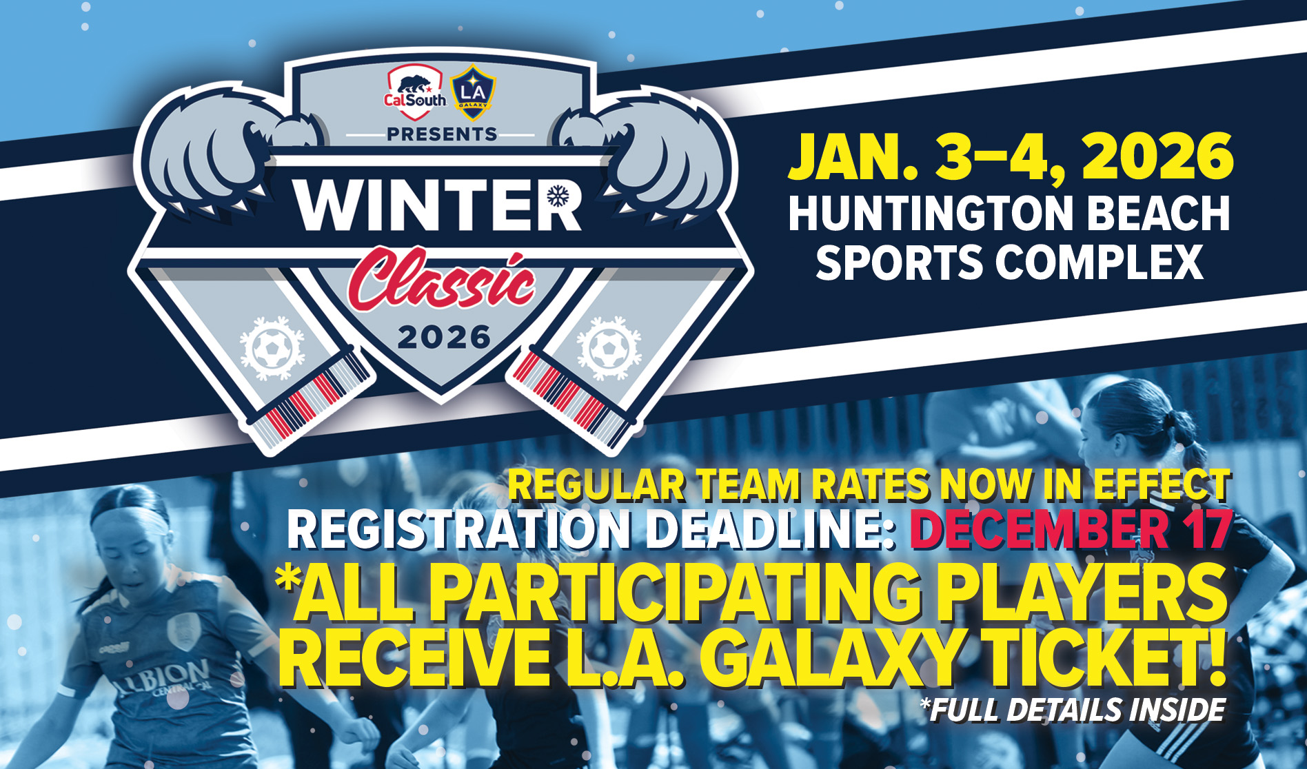 December 17th is Registration Deadline for 2026 Winter Classic presented by the LA Galaxy | *Participating Players Each Receive Galaxy Ticket